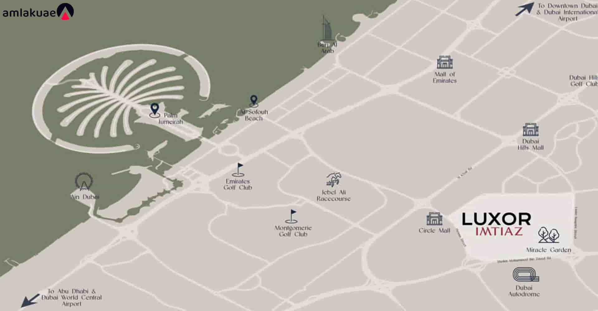 The Luxor apartment project by Amtiyaz developer is located in the family-oriented Jumeirah Village Circle (JVC) community. Surrounded by lush parks and charming villas, this project offers a peaceful lifestyle close to the iconic Burj Al Arab. Completion is scheduled for the third quarter of 2026. Luxor provides an ideal choice for families and anyone seeking a calm life near the Burj Al Arab.