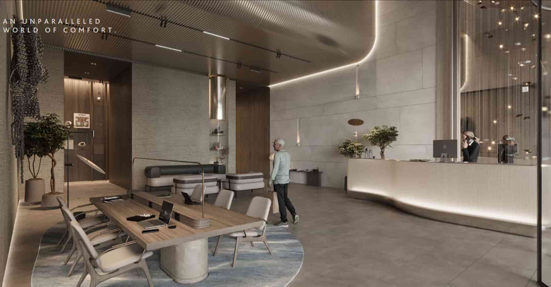 The design and construction of the tower are evident in every detail. Upon entering this world of grandeur, the stunning podium with higher ceilings than other towers and tall column structures greets you. The podium, which mesmerizes you upon entry, is a testament to the magnificence you experience inside the tower.