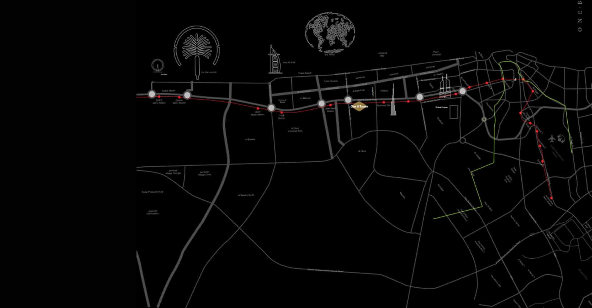 Distance from One Million Tower to key areas of Dubai