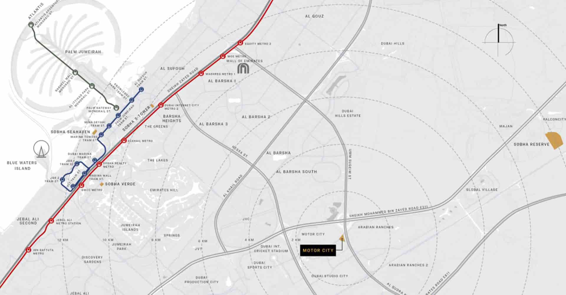 Distance from Sobha Orbis Project to Major Dubai Areas: