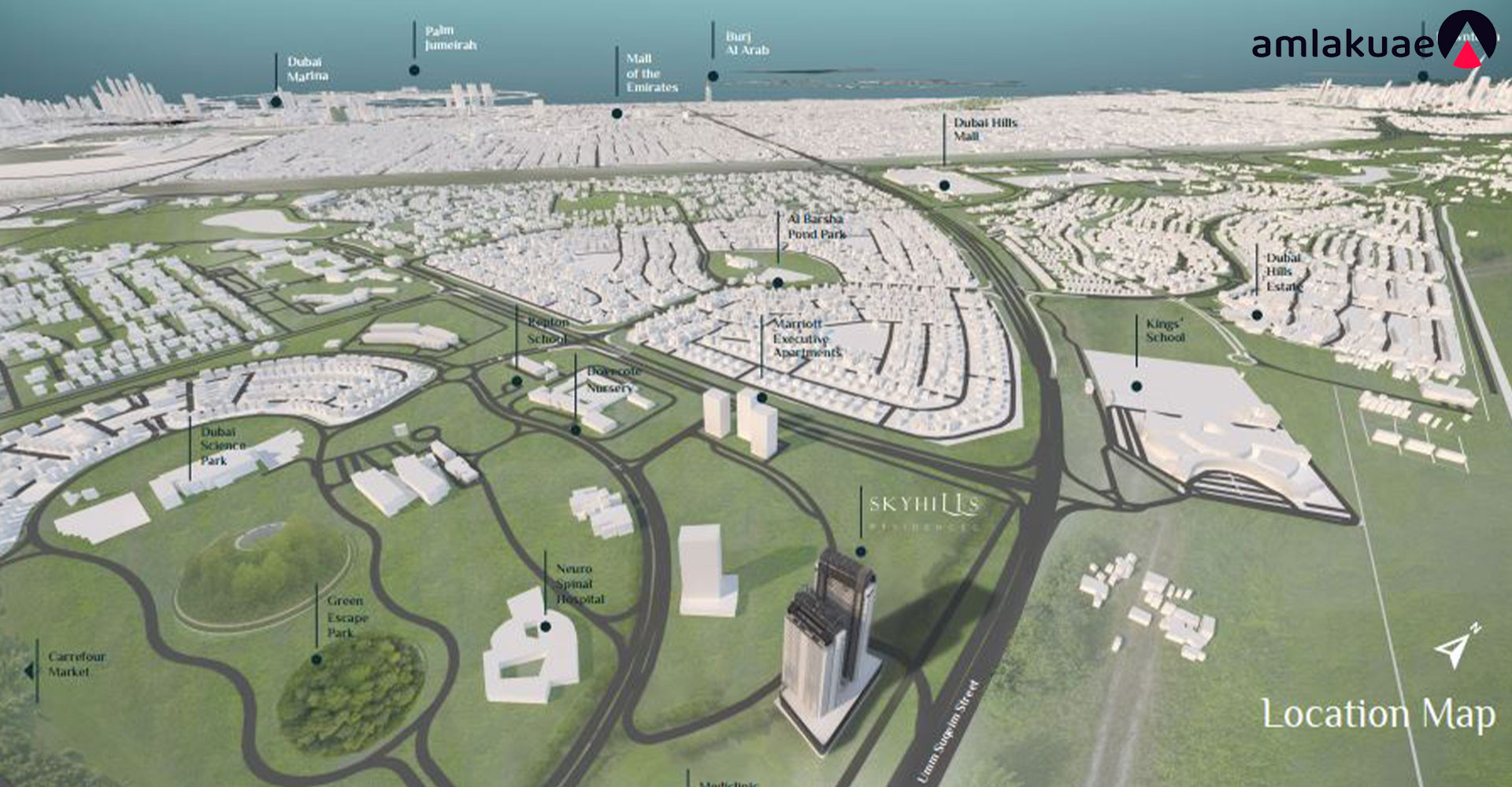 Sky Hills offers a prime location close to Dubai Hills, schools, hospitals, and major roads. It ensures a comfortable lifestyle for residents with easy access to transportation networks.