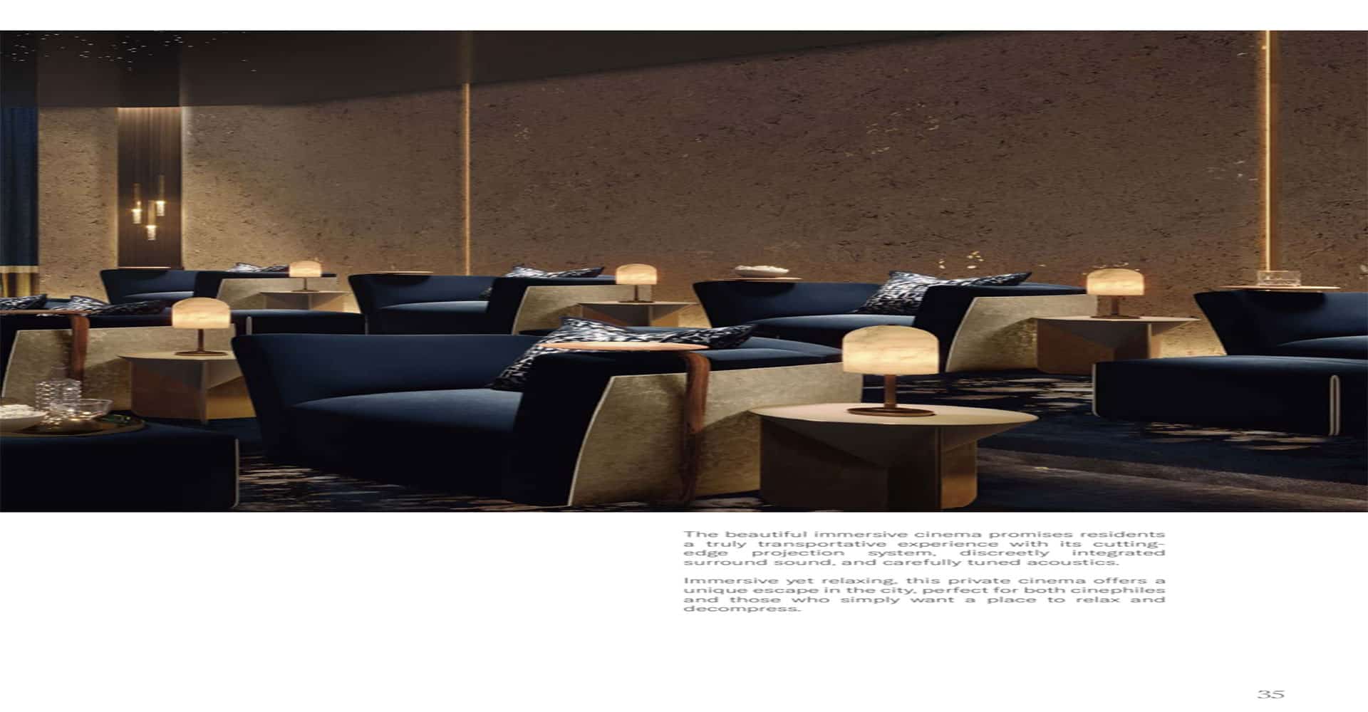 Residents enjoy a grand lobby with concierge, an outdoor pool, state‑of‑the‑art gym with skyline views, exclusive lounge, housekeeping, valet parking, 24/7 security, and bespoke services such as private chef, childcare, laundry, and private transfers.