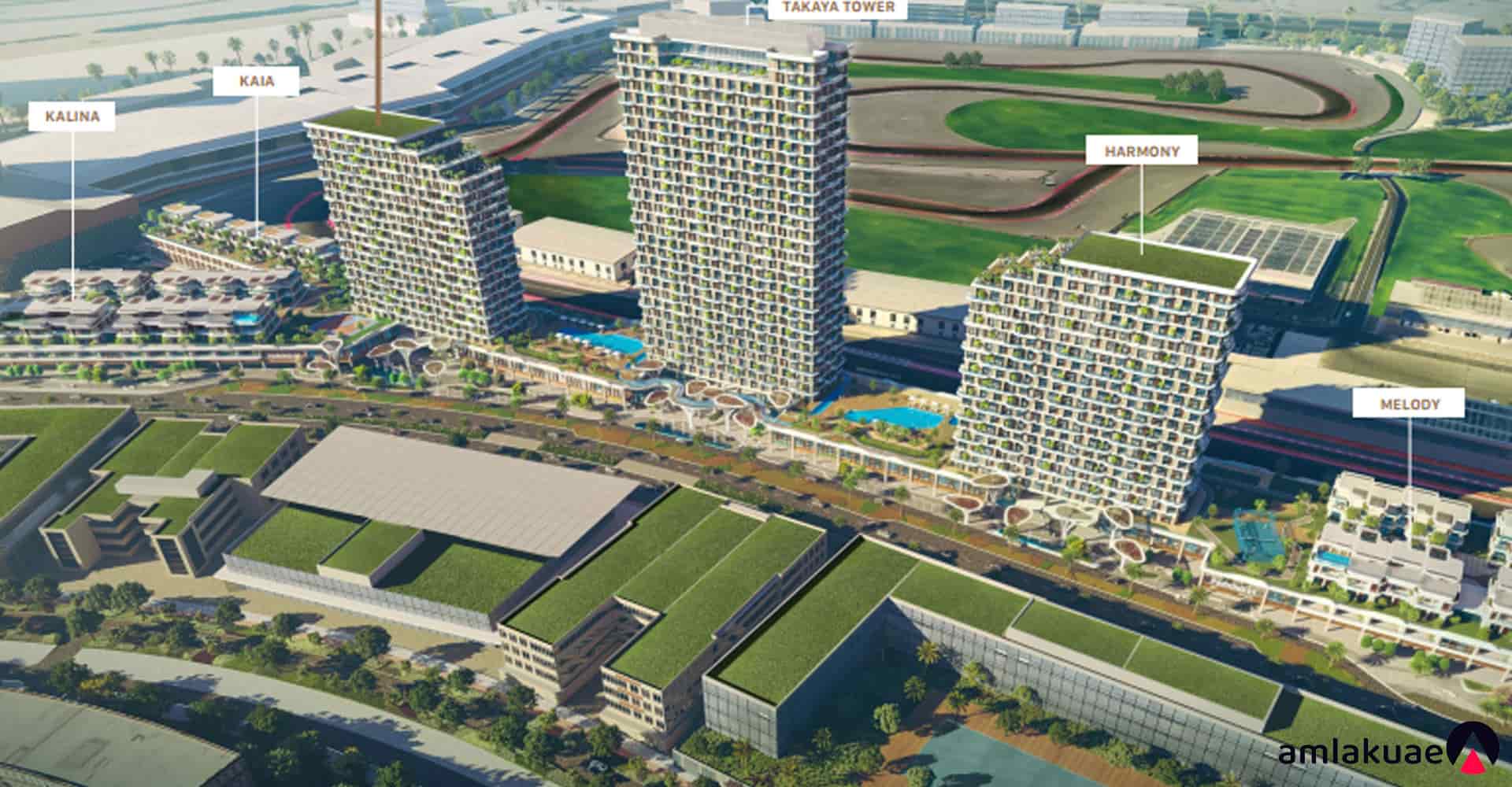 The Takaya collection goes beyond what one would expect from a residential community. Imagine a harmonious architectural design that spans from studio flats to villas, all presented in a unified style. Takaya is the latest and most complete residential complex in MotorCity, covering a total area of 1.18 million square feet in Dubai. With its modern amenities, these beautiful villas and apartments will become a piece of paradise for the people of Dubai Featuring modern architectural design, advanced amenities, contemporary appliances, and fully equipped kitchens, Takaya townhouses will have a royal appearance. With countless options for wellness, fitness studios, playgrounds, running/walking tracks, schools, healthcare centers, and excellent shopping and dining options nearby, Takaya will be one of the best places to live. With 450 square meters of podium space and lush green landscaping, Takaya will boast one of the largest and most vibrant podiums in the community